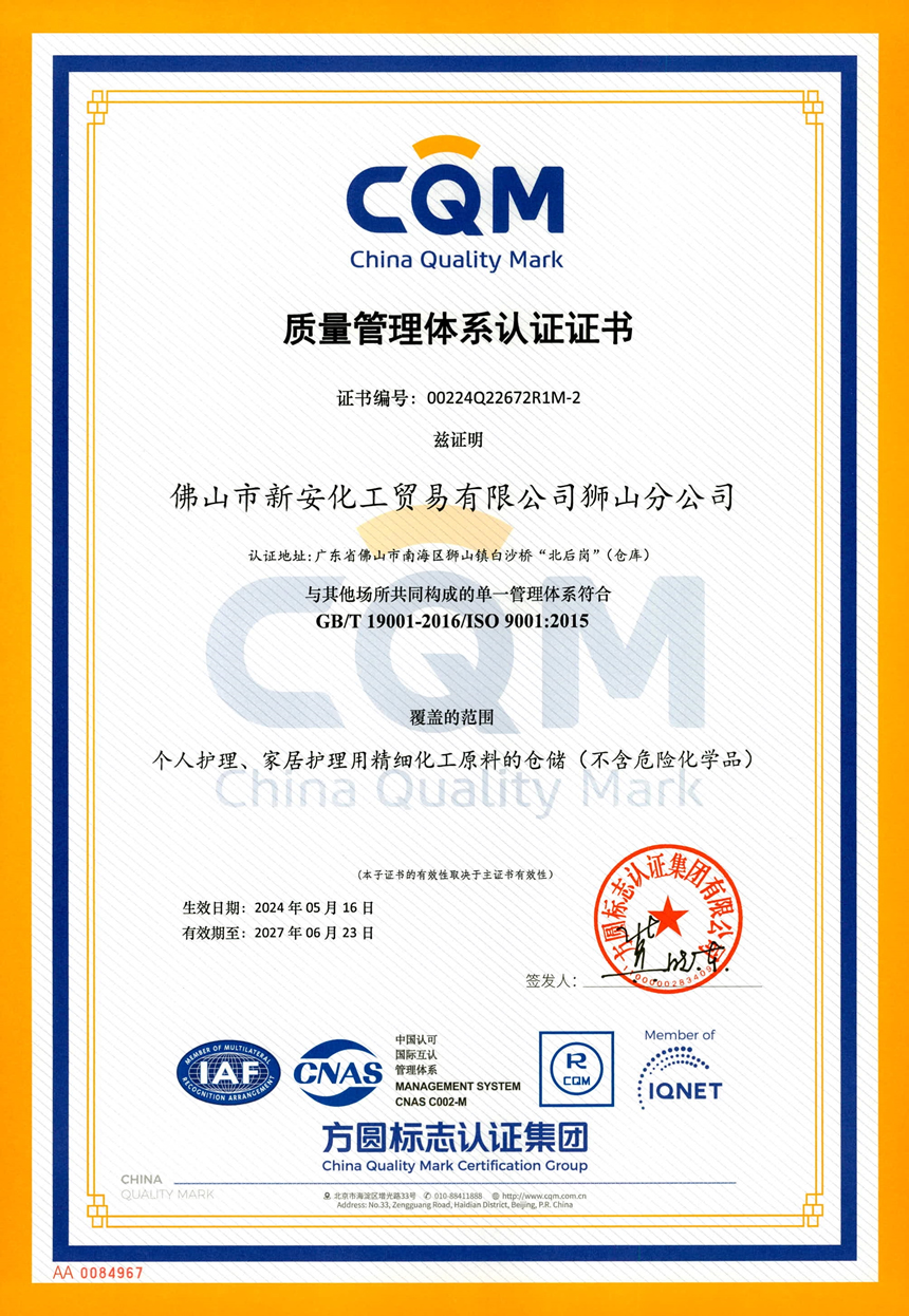 ISO9001質(zhì)量管理體系認(rèn)證證書